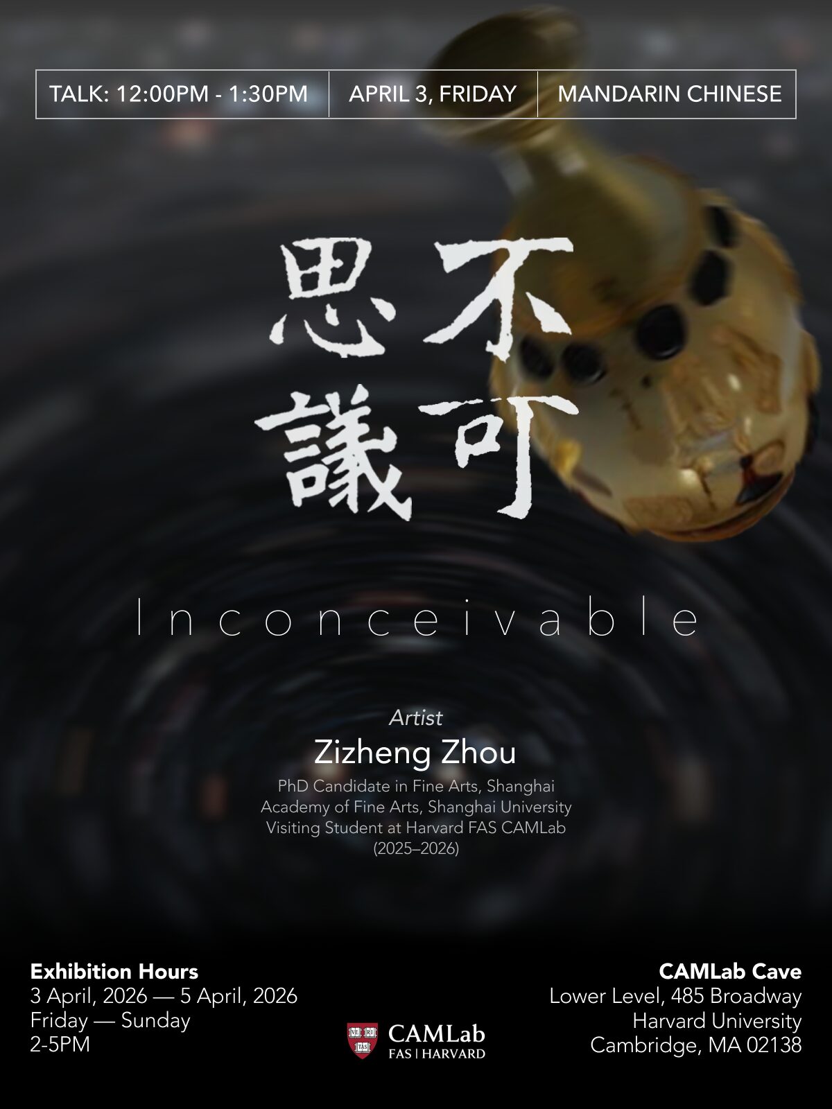 Zizheng Zhou is a sculptor and installation artist. He is currently a Ph.D. candidate at the Shanghai Academy of Fine Arts, Shanghai University, and a 2025–2026 Visiting Student at Harvard University FAS CAMLab. His research and artistic practice focus on contemporary sculpture, glass art, and public art. His recognitions include the UCCA Lab Emerging Artist – Best Presentation Award (2022), the Stanislav Libenský Award (2021, 2018), the Zeng Zhuoshao Sculpture Scholarship (2021), the Tomorrow Sculpture Award (2020), and the International Exhibition of Glass Kanazawa (2019).